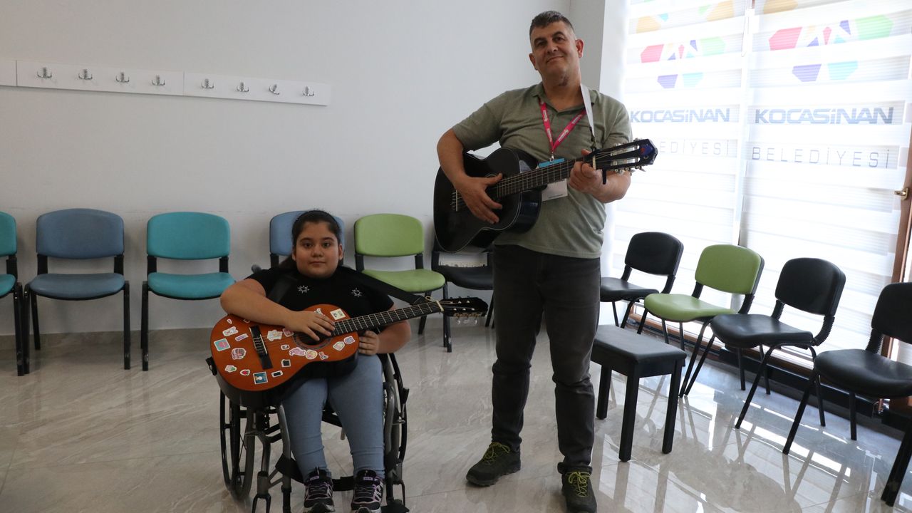 Zeynep’in babası Orhan Gazi Yıldırım kızının küçüklüğünden beri gitar çalmak istediğini söyleyerek, “Kurs araştırması yaptık. Burada 6 ay boyunca gitarda kendini çok iyi geliştirdi. Kursa ilk başladığında çok heyecanlanmıştı. Hala da heyecanını koruyor. Zeynep, müziği çok seviyor. Müzik de Zeynep’e hayat neşesi oluyor. Kurs, kızıma çok faydalı oluyor. Hem hayatta tutuyor. Hem de öz güveni gelişti. Hem de bir şeyleri başarmış olduğunun mutluluğunu yaşıyor” diye konuştu. (DHA)