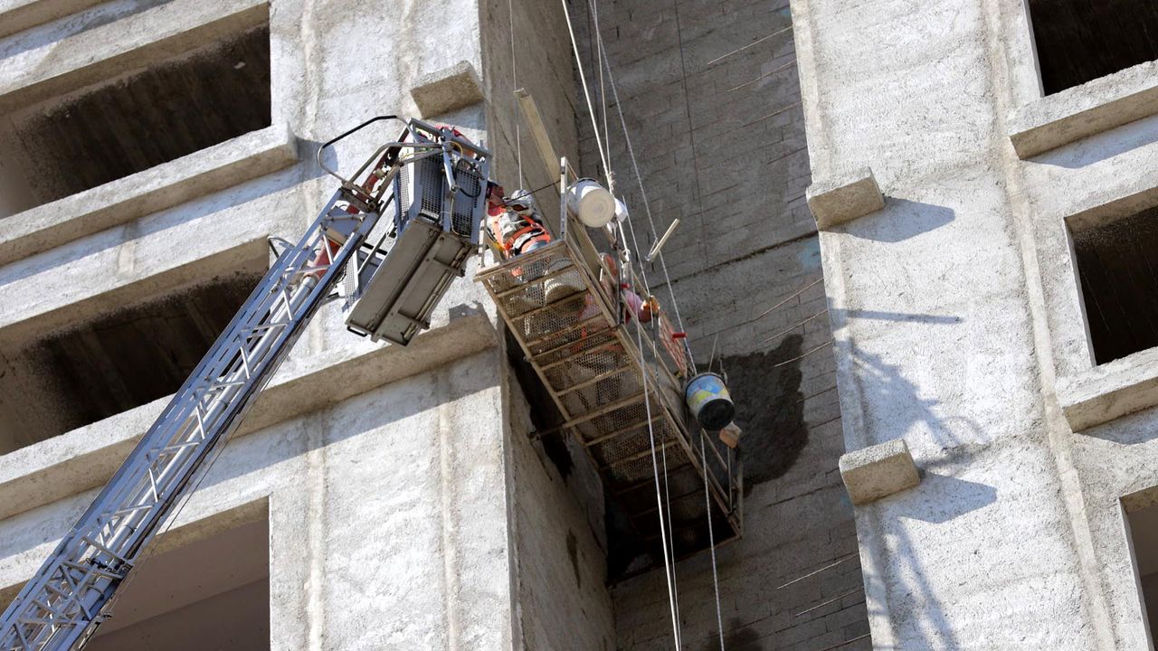 MERSİN, (DHA)- MERSİN’de 14 katlı bina inşaatında dış cephe çalışması yapan 2 işçi, elektrik arızası nedeniyle 13'üncü katta iskelede mahsur kaldı. İşçiler, itfaiye ekipleri tarafından kurtarma aracının 54 metre uzunluğundaki merdiveniyle kurtarıldı.