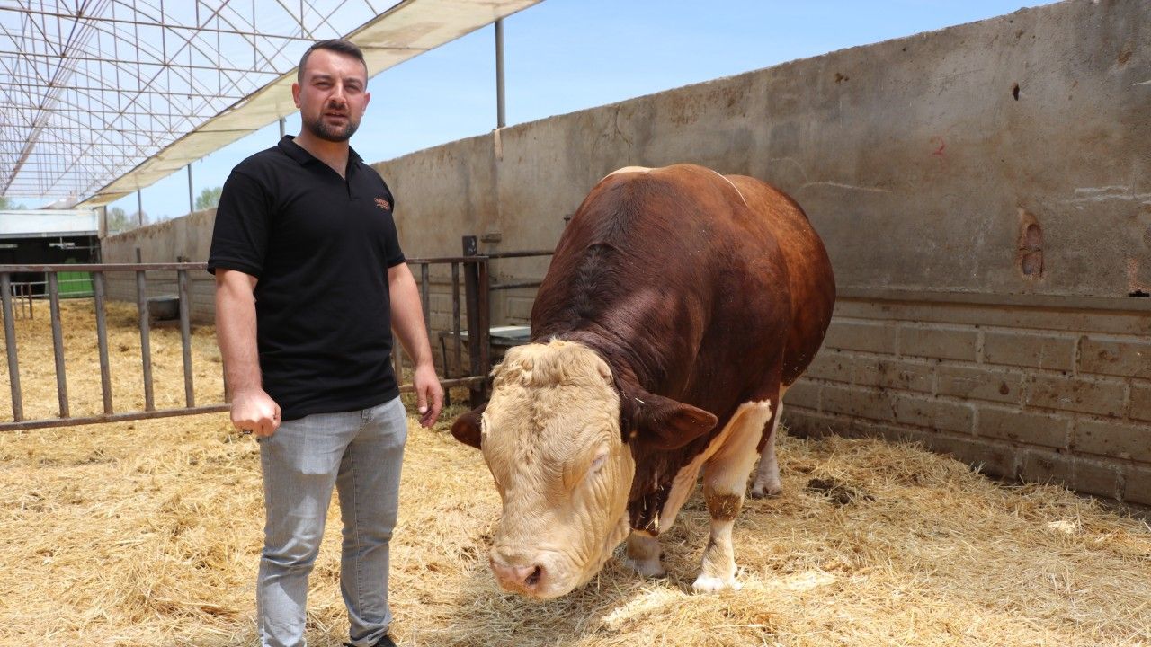Simmental ırkının özelliklerine değinen Asıl, "Simmental kombine bir ırktır. Hem etçi hem sütçü bir ırktır. Erkek hayvanlarında ortalama yüzde 68 oranında randımanı olan günde 1350 ve 1650 gram arasında et alan bir ırktır. Burada diğer ırklarla kıyasladığımız zaman hem randımanda hem süt verimliliğinde Simmental ırkının farkını çok rahat bir şekilde görebiliriz. Simmental ırkının ülkemiz hayvancılığına daha çok katkıda bulunacağına inanıyoruz. Bu şekilde çalışmalarımız devam etmektedir. Poyraz'ı şu anda satılığa çıkardık. Bu boğamız en son 500 bin TL'yi gördü. 550 bin TL istedik. O şekilde pazarlığımız yarıda kaldı. Yeni alıcılarını, yeni taliplerini inşallah bekliyoruz. 4 yaşında, yaklaşık 1,5 ton ağırlığın üzerinde. Yaklaşık 1 ton civarında et çıkmasını bekliyoruz" diye konuştu. (DHA)