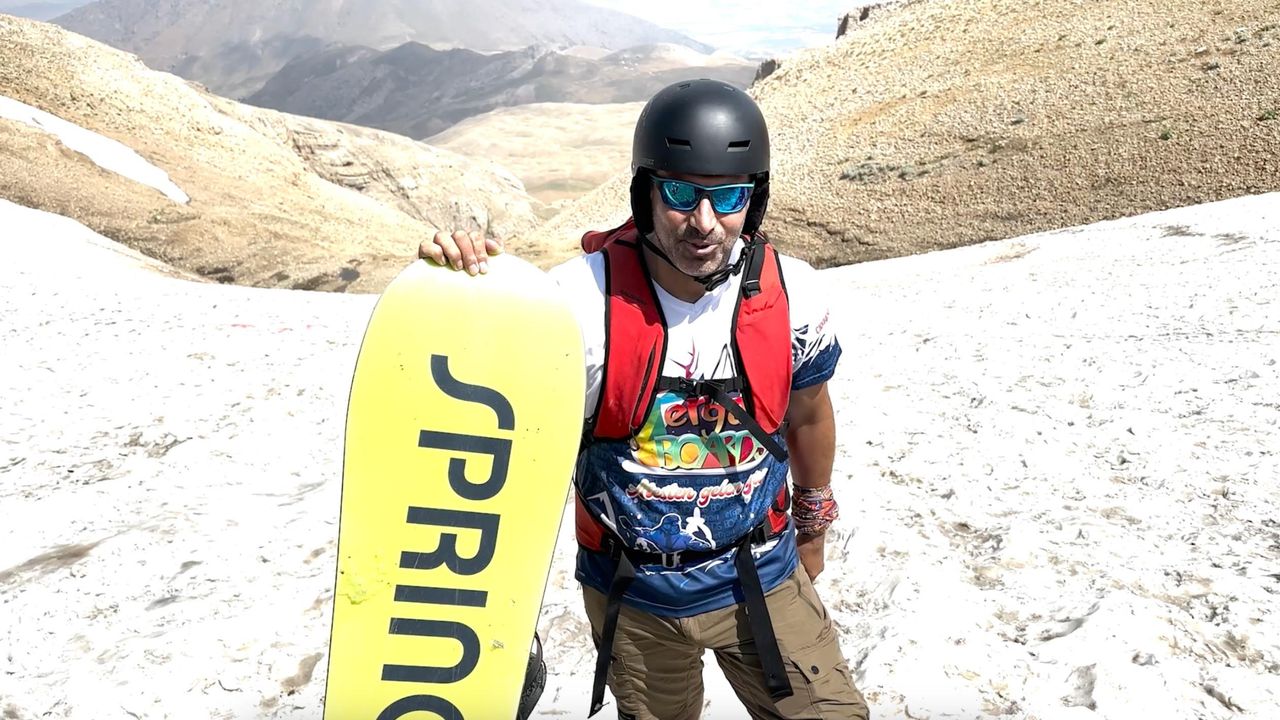 Sıcağın etkisinden kurtulmak için Ergan Dağı'na çıktıklarını belirten Yunus Kaya da ağustos ayında snowboard keyfi yaşadıklarını söyledi.
