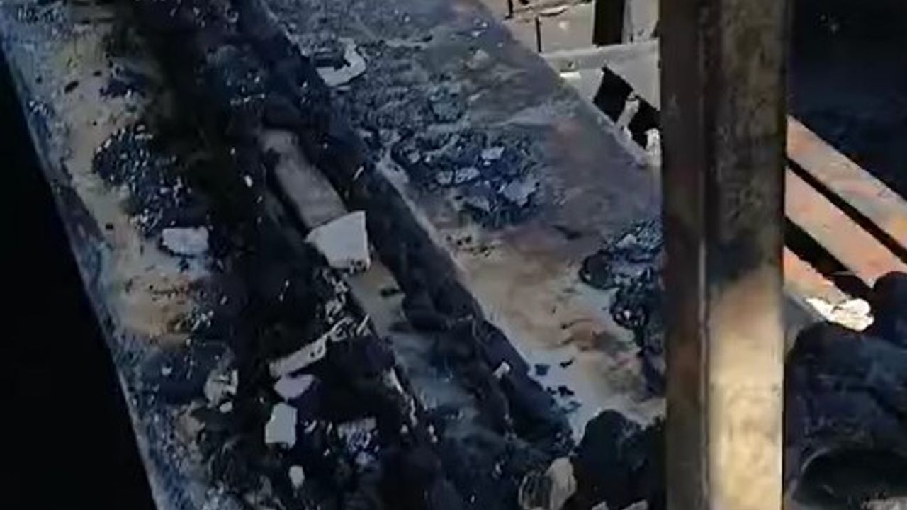 Bursa’da 1’i bebek 3 kişinin hayatını kaybettiği yangının çıktığı dairenin içi görüntülendi. 4 katlı binanın 3’üncü katındaki daire is ve külle kaplanırken, buzdolabının üst kısmının eridiği, Belgüzar Kaplan, Hasan Emir Efe Çorapçı ve Müyesser Ar’ın can havliyle balkonuna çıktığı oturma odasındaki televizyonun ise asılı olduğu duvardan düşüp, demir yığınına döndüğü görüldü. 3 kişinin kurtarılmak için bekledikleri balkonun duvarlarında kalan eşyaları da görüntülere yansıdı. (DHA)