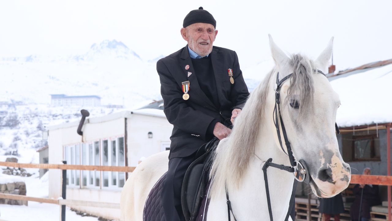 Furkan KAVUKLU/KAYSERİ, (DHA)- KORE Gazisi Şevki Kanak (96), gençliğinden gelen at binme sevgisini, damadının yardımıyla devam ettiriyor. Kanak, 'Ben çobandım. 1 yıl Kore'de çarpıştım. Gençliğimde at biniyordum. At üzerinde olmanın duygusu başka' dedi.