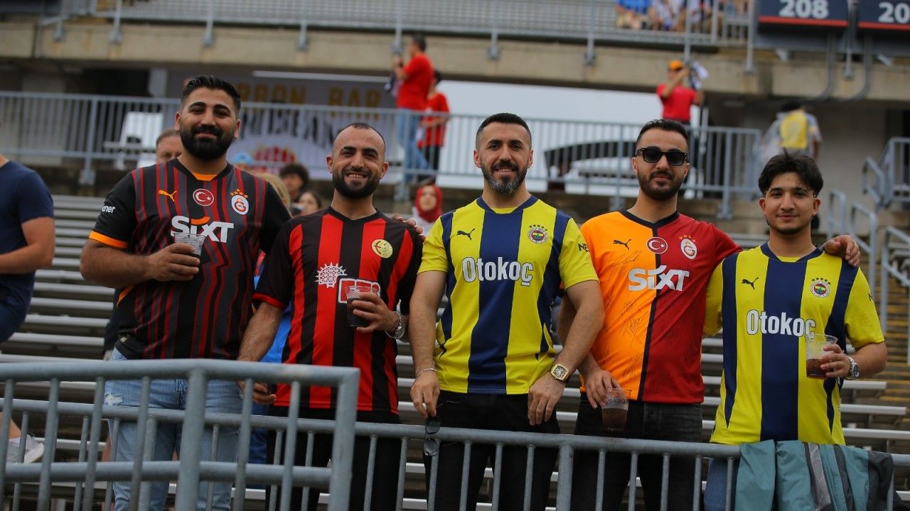 Uğur DEMİRKIRDI / Hartford CT - (ABD), (DHA)- A Milli Futbol Takımı'nın ABD ile oynadığı hazırlık maçı için uzak mesafelerden gelen binlerce taraftar, ay-yıldızlı ekibi yalnız bırakmadı. Yağışlı havaya rağmen tribünlerde yer alan Türk futbol severler çok renkli görüntüler oluşturdular. Türkiye’de gönül verdikleri renklere aldırmaksızın Fenerbahçelisi, Galatasaraylısı, Beşiktaşlısı, Trabzonsporlusu, Giresunsporlusu birlik olup milli takımı desteklediler.