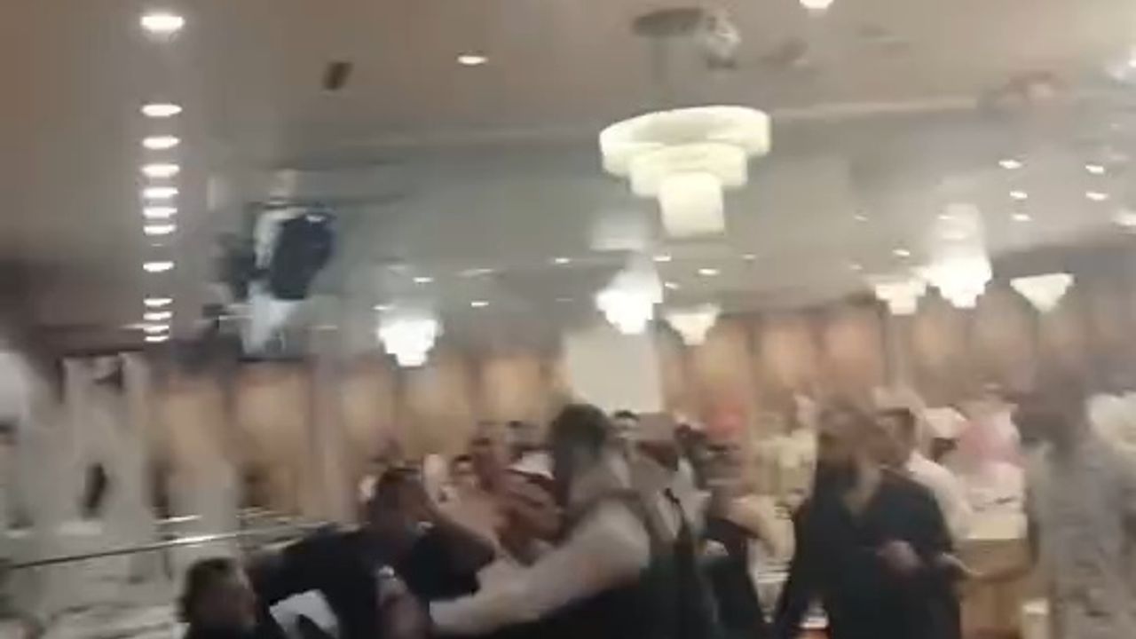 Öte yandan iki grubun düğün salonundaki kavgası, cep telefonu kamerasıyla kaydedildi. Polis, kavgaya karışan çok sayıda kişiyi gözaltına aldı. (DHA)