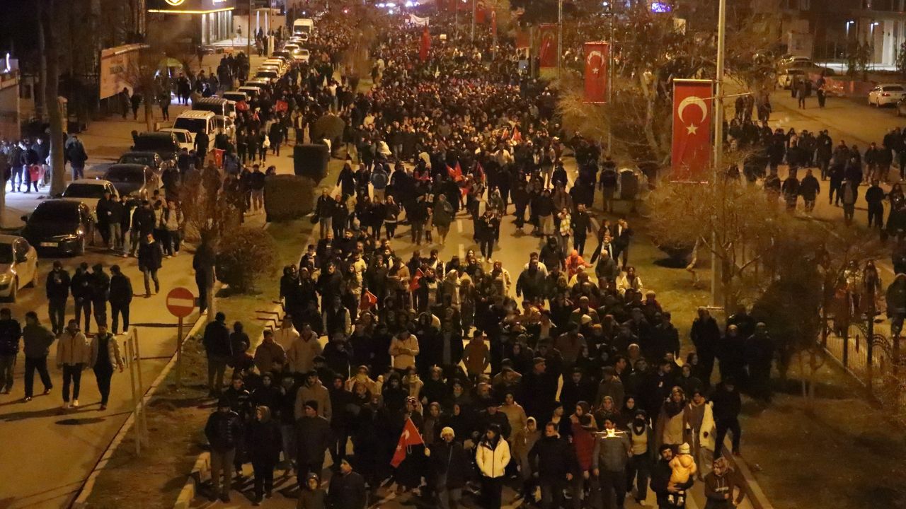 Adıyaman'da, 'Asrın Felaketi' olarak nitelendirilen Kahmanmaraş merkezli ikiz depremlerinin üçüncü yıl dönümünde binlerce kişi, gecenin ilerleyen saatlerinde Atatürk Bulvarı'ndaki Valilik binası önünde toplandı. Kiminin elinde balonlar, kimilerinde ise afette hayatını kaybettiği yakınlarının fotoğraflarının bulunduğu vatandaşlar, buradan yaklaşık 2 kilometre yürüyerek bulvar üzerinde bulunan ve ilk depremin meydana geldiği 04.17'de duran saat kulesinin önünü kadar sessiz yürüyüş gerçekleştirdi.