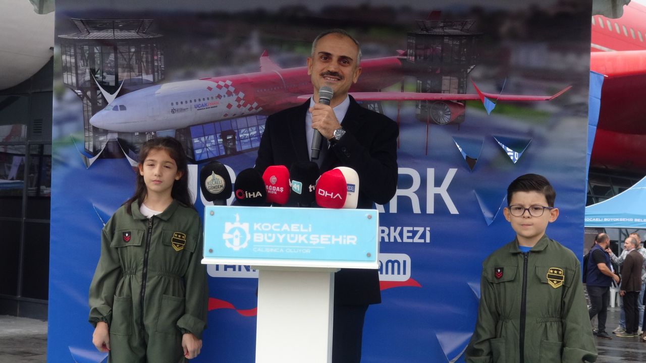 Törene katılan öğrencilere seslenen Kocaeli Büyükşehir Belediye Başkanı Tahir Büyükakın, gelecek vizyonunun kapılarını açtıklarını belirterek, “Eskiden müzelerde sergilenen eserlere dokunulmaması, sadece bakılması için etrafı genellikle iplerle, bariyerlerle çevrilerek muhafaza altına alınırdı. Ancak daha sonra özellikle çocukların keşfetmesi, ilham alması, o ilhamla yaratıcılıklarının pekişmesi için tasarımlar yapıldı. Aranızdan birileri şu uçağın içinde uçağı merak etmeye başlasın. Uçağın yazılımını yapsın, donanımını yapsın, yarın bu uçağı Türkiye’de bu uçağın daha iyisini yapsın ve benim ülkem dünyanın en ileri ülkesi olsun. Kafamız bu, bunu yapma sebebimiz bu, onun için biraz sonra uçağın içinde gezerken bütün bunları düşünerek gezin, yarın bu ülkeye iyilik yapmak istiyorsanız bunu yapacaksınız.” dedi.