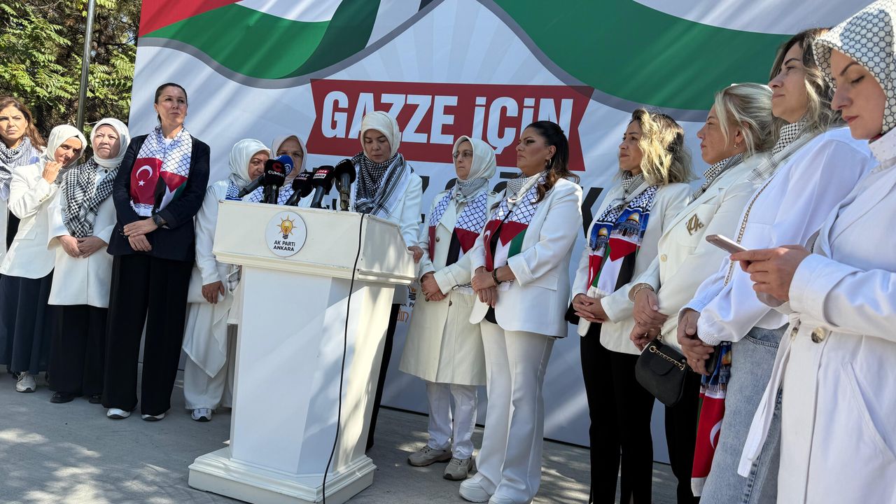 AK Parti Genel Merkez Kadın Kolları Başkanlığı, İsrail'in Gazze'ye yönelik saldırılarının 2'nci yıl dönümü nedeniyle 81 ilde 'Gazze İçin Sessiz Çığlık' etkinliği düzenledi. AK Parti Ankara İl Kadın Kolları üyeleri, bu kapsamda Dışişleri Bakanlığı konutu önünde bir araya geldi. 'Barış kadınla mümkün', 'Filistin özgür olacak', 'Özgür Filistin' yazılı pankartlar ile Türk ve Filistin bayrakları taşıyan katılımcılar, Gazze'de yaşanan zulme tepki gösterdi. Etkinliğe AK Parti Grup Başkanvekili Leyla Şahin Usta, AK Parti Ankara Milletvekilleri Jülide Sarıeroğlu ve Lütfiye Selva Çam, Akyurt Belediye Başkanı Hilal Ayık ile partili kadınlar katıldı. Eyleme katılan kadınlar el ele tutuşarak Dışişleri konutu ile İsrail Büyükelçiliği arasında zincir oluşturdu.