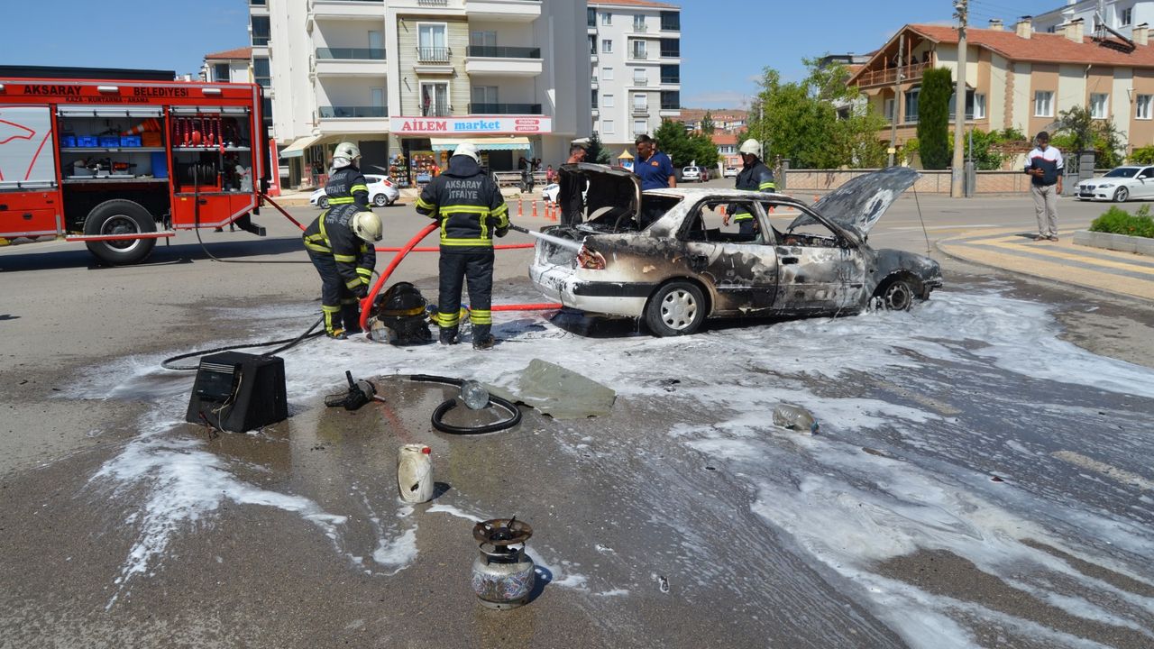Erkan ALTUNTAŞ/AKSARAY, (DHA)- AKSARAY’da seyir halindeyken alev alan otomobil kullanılamaz hale geldi.