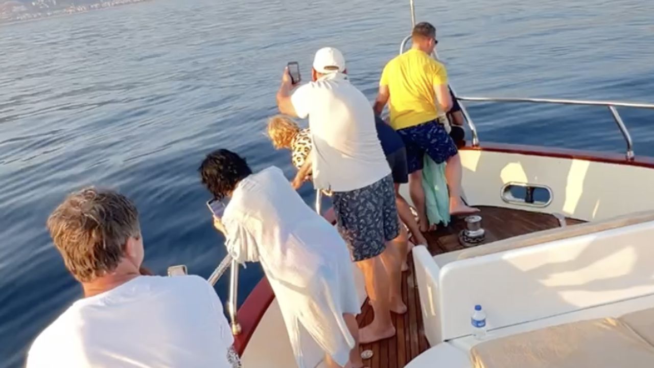 Alanya Kalesi açıklarında dün öğle saatlerinde tekneyle gezintiye çıkan turistler, yunuslarla karşılaştı. Aniden ortaya çıkan yunuslar tekneyle yarışıp, çeşitli hareketler yaparken, tatilciler de bu anları ilgiyle izledi. Eğlenceli görüntülerin ortaya çıktığı yolculukta yunusları izleyen turistler o anları cep telefonları ile kaydetti. (DHA)