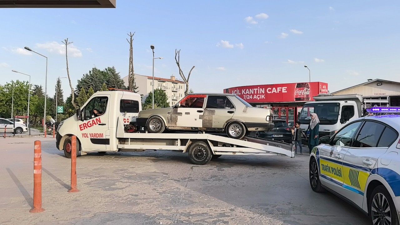 Sürücü ifadesi alınmak üzere polis merkezine götürülürken, araç çekici yardımıyla otoparka çekildi. (DHA)