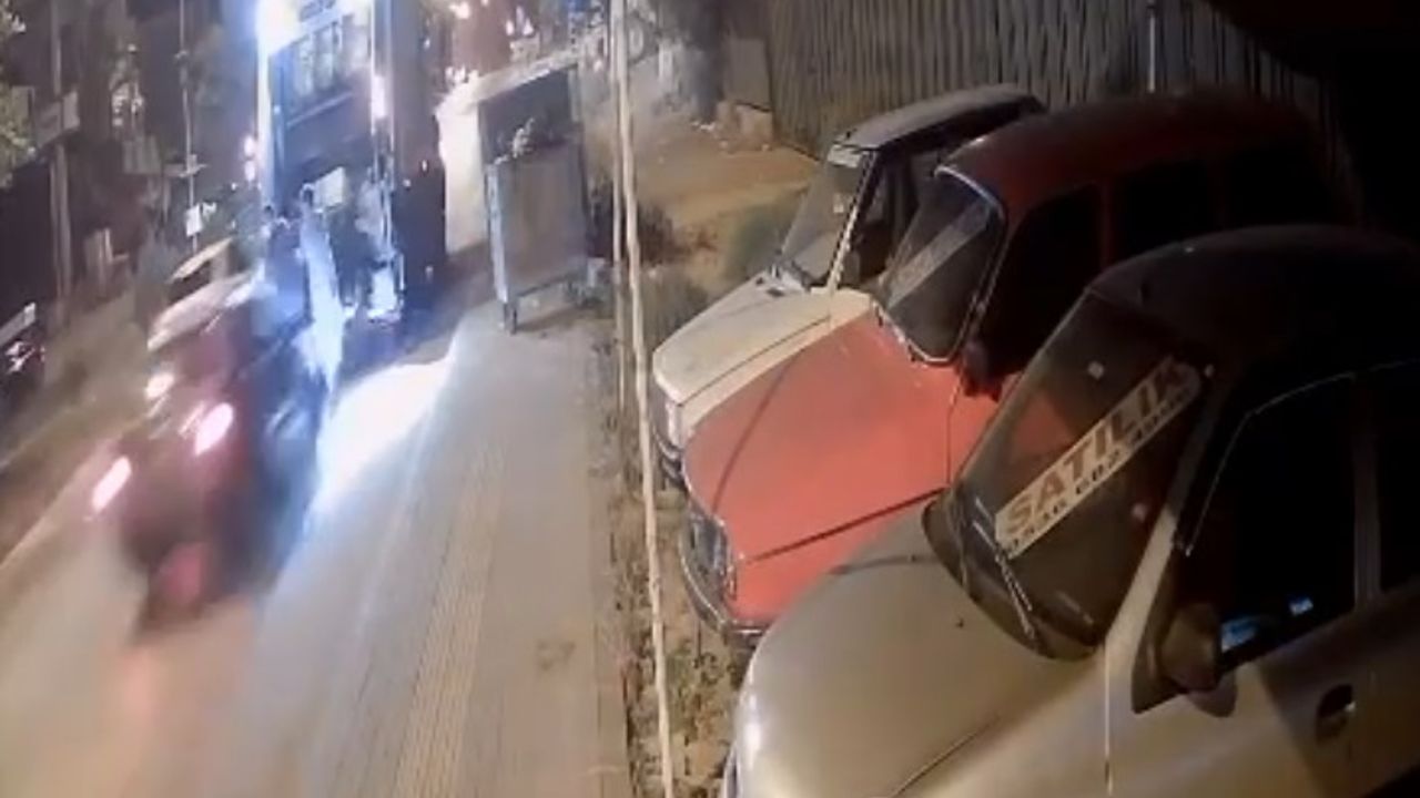Öte yandan, kaza anı çevredeki bir iş yerinin güvenlik kamerasına yansıdı. (DHA)