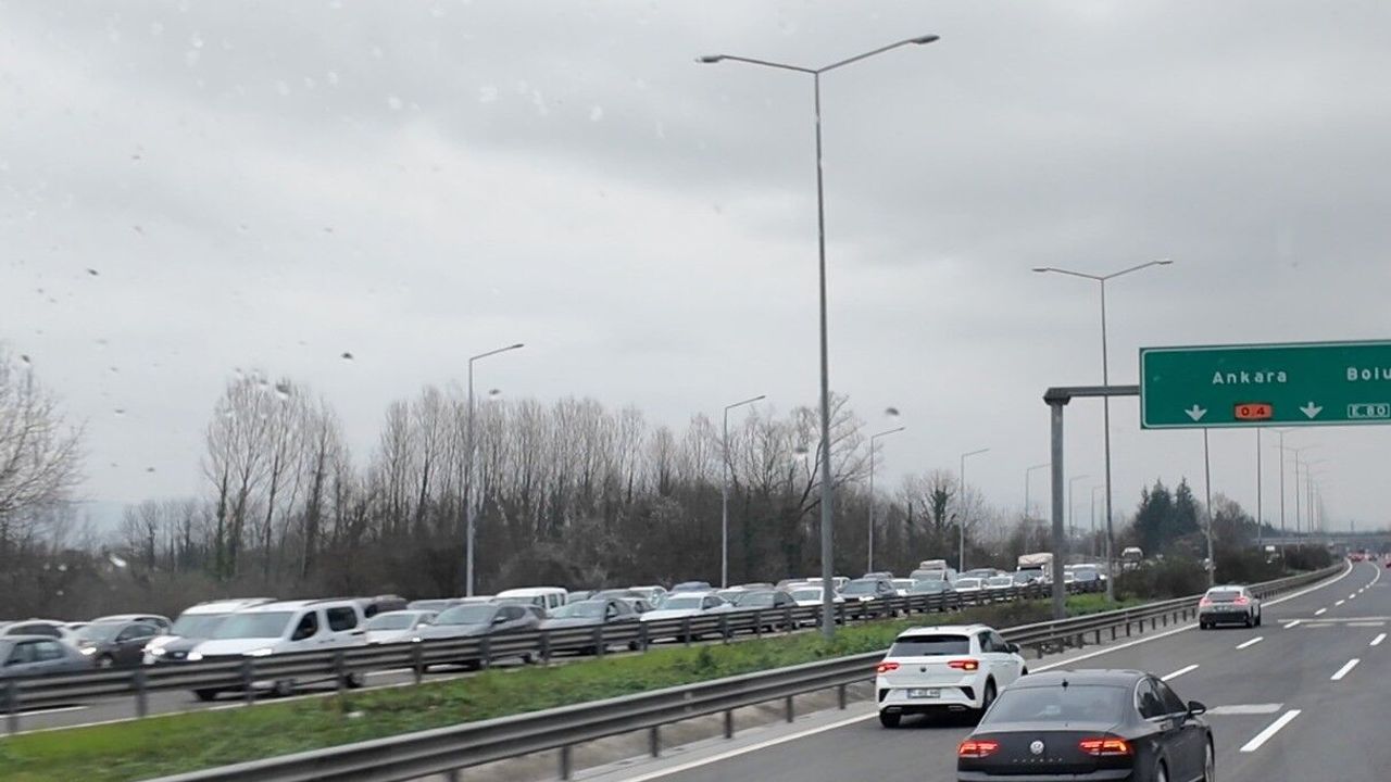 Musa KESKİN/DÜZCE,(DHA) - RAMAZAN Bayramı tatilinin son gününde Anadolu Otoyolu'nun Düzce geçişi İstanbul yönünde trafik yoğunluğu oluştu.