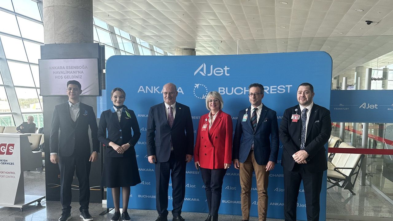 TAV Havalimanları tarafından işletilen Ankara Esenboğa Havalimanı'ndan AJet Havayolları'nın Bükreş'e düzenlediği ilk uçuş, törenle uğurlandı. Dün saat 17:30'da Boeing 737-8 MAX tipi uçakla gerçekleştirilen VF595 sefer sayılı ilk uçuşla yolcular Ankara'dan Bükreş'e hareket etti. Düzenlenen törene Ankara Esenboğa Havalimanı Mülki İdare Amiri Cem Afşin Akbay, DHMİ Esenboğa Başmüdürü Yücel Karadavut, AJet Havayolları Genel Müdürü Kerem Sarp, TAV Ankara Genel Müdürü Nuray Demirer, ATO Başkanı Gürsel Baran ile havalimanı ve havayolu çalışanları ile diğer davetliler katıldı. AJet Havayolları, Ankara-Bükreş hattında pazartesi, perşembe ve cumartesi günleri olmak üzere haftada üç gün karşılıklı sefer düzenleyecek.