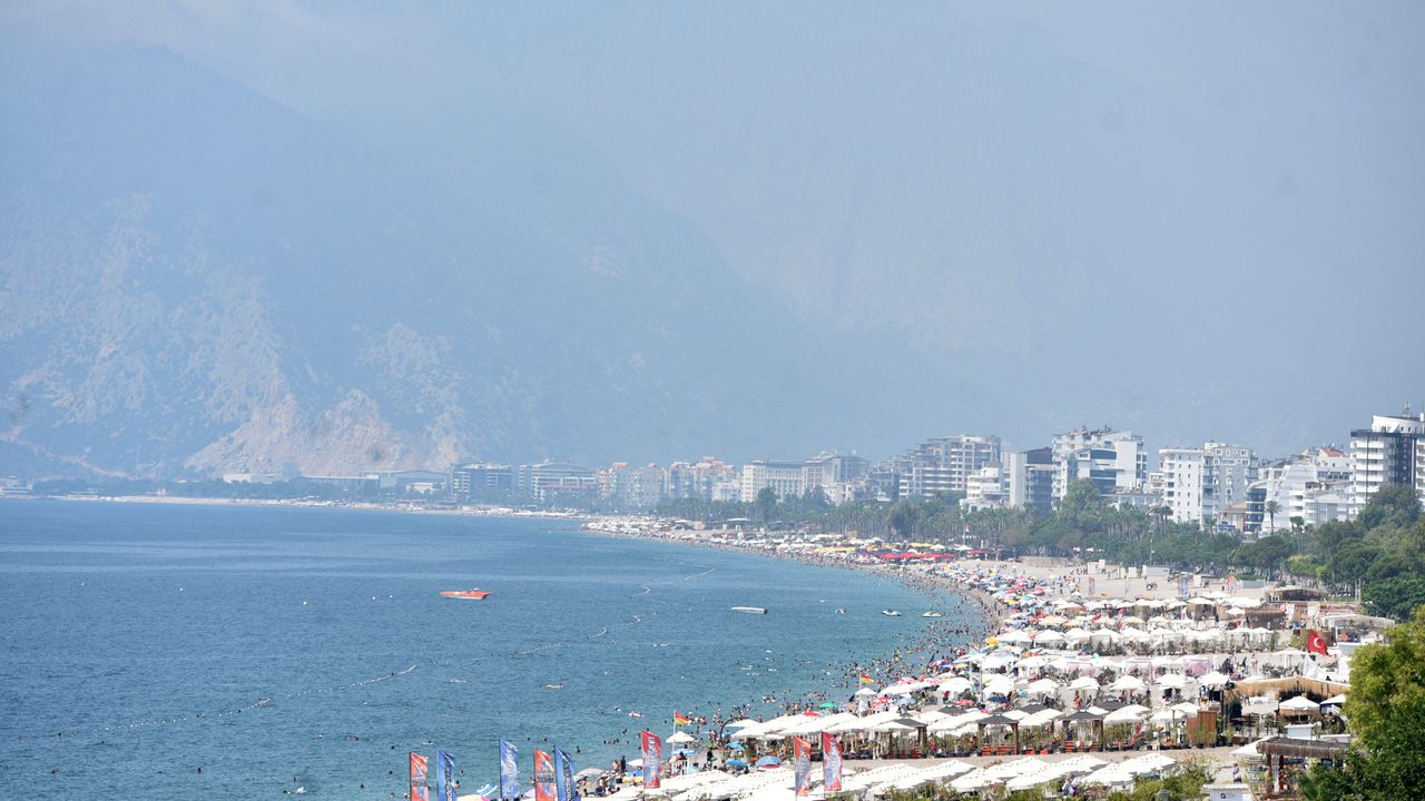 Nem nedeniyle kenti çevreleyen dağların görülmediği Antalya'da, serinlemek isteyenler Konyaaltı Sahili'nde yoğunluk oluşturdu. Sıcaktan bunalanlar denize girip, plaj şemsiyesinin gölgesinde vakit geçirdi. Bazıları tehlikeli olmasına rağmen sahile yakın kayalıklardan atlayarak denizde yüzdü.