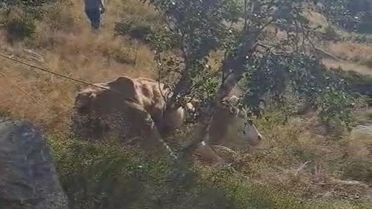 Nurbay USTA/ŞAVŞAT (Artvin), (DHA)- ARTVİN’in Şavşat ilçesinde kayalıklardan düşerek yaralanan inek, mahsur kaldığı yerden AFAD ekiplerinin 12 saat süren çalışmasıyla kurtarıldı.