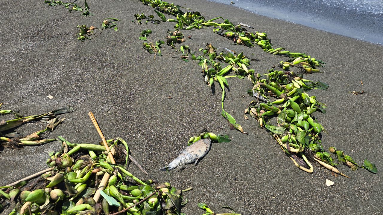 Lübnan’dan doğup Hatay'ın Samandağ ilçesinden denize dökülen Asi Nehri’nde günlük iklim değişikliği, aşırı kirlilik ve suyu kaplayan su sümbülleri nedeniyle sık sık balık ölümleri yaşanıyor. Özellikle kirlilik ve su sümbülleri nedeniyle oksijen yetersizliği yaşanan nehirde ölen balıklar, Asi Nehri'nin Akdeniz’le buluştuğu Samandağ ilçesinde sahile vurdu. Uzmanlar, su sümbülleriyle birlikte sahile vuran tatlı su balıklarının tüketilmemesi için uyarıda bulundu. (DHA)