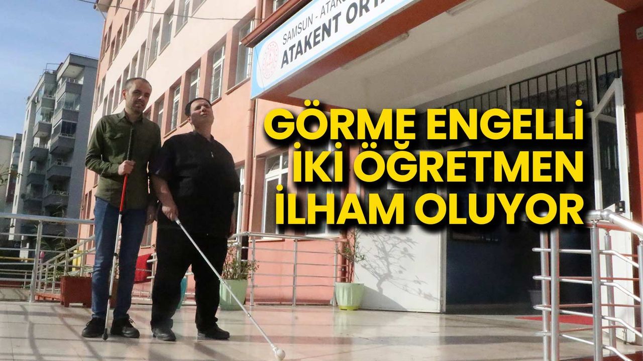 Samsun’da Atakent Ortaokulu’nda görev yapan görme engelli öğretmenler Ahmet Tayfur Arslan ve Habib İbar, hem öğrencilerine hem de çevrelerine ilham olmaya devam ediyor.