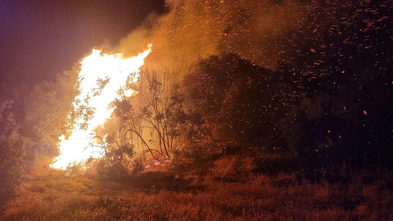 Aydın'ın Bozdoğan ilçesinde Yazıkent Mahallesi Kızılçakır mevkisindeki makilikte saat 16.00 sıralarında çıkan yangını söndürme çalışmaları devam ediyor. Ekipler, gece olduğu için müdahaleye karadan devam ediyor. (DHA)