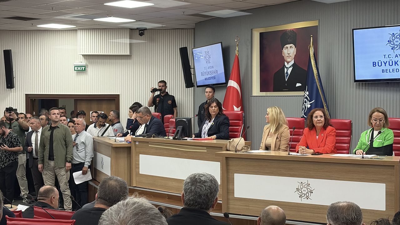 Melek FIRAT/ AYDIN, (DHA)- CHP'den AK Parti’ye geçen Aydın Büyükşehir Belediye (ABB) Başkanı Özlem Çerçioğlu'nun başkanlık yaptığı Meclis Toplantısında; 30 maddelik meclis gündemine CHP grubu red oyu verdi. Yaşanan gerginlikler nedeniyle ABB meclis toplantısı 14 Ekim tarihine ertelendi.