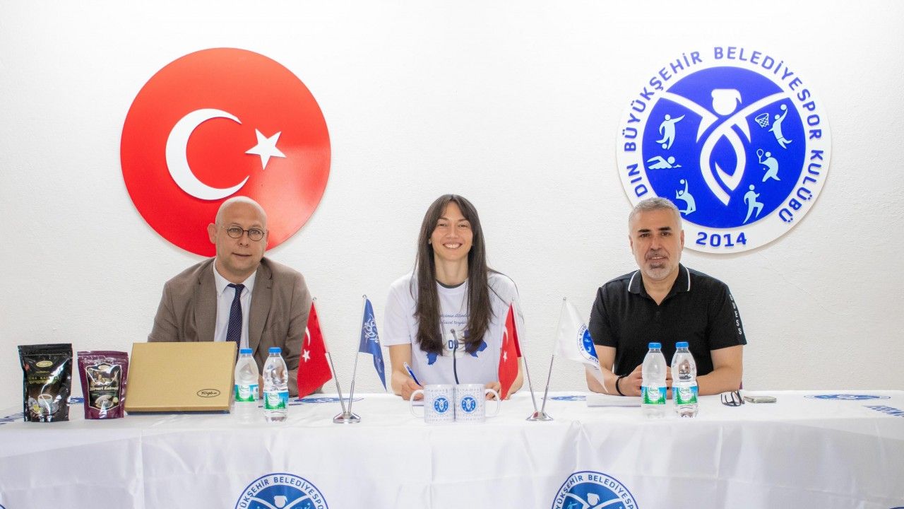 SULTANLAR Ligi ekiplerinden Aydın Büyükşehir Belediyespor iç transferde takım kaptanı Fatma Şekerci ile yeniden anlaştı. Kulüp Başkanı Polat Bora Mersin'in katılımıyla gerçekleştirilen imza töreninde, 35 yaşındaki smaçör yeni sözleşme imzaladı. Mavi-beyazlı takımda 2022-23 sezonundan bu yana forma giyen Fatma, takımdaki 4'üncü sezonuna başlayacak. Kulübün sosyal medya hesabından yapılan açıklamada, "Kaptan Fatma Şekerci ile yeniden. Üç sezondur sahada duruşuyla, oyunuyla ve liderliğiyle örnek olan kaptanımız Fatma Şekerci ile yeniden anlaştık. Kaptanımıza başarılı ve sakatlıksız bir sezon diliyoruz" denildi.