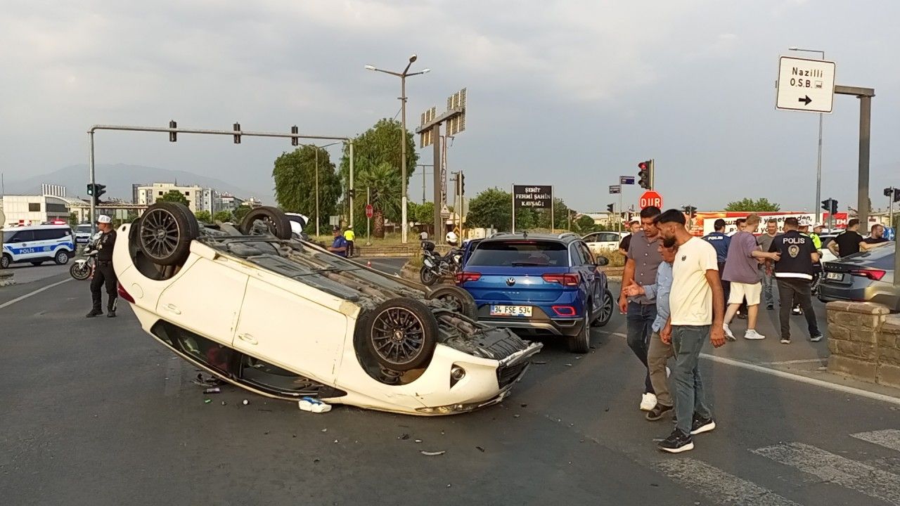 Kaza, saat 20.00 sıralarında Nazilli-Aydın kara yolu üzerinde Organize Sanayi Bölgesi Kavşağı'nde meydana geldi. T.Ö. yönetimindeki 34 FSE 534 plakalı otomobil, A.E. idaresindeki 09 R 9475 plakalı otomobille çarpıştı. Çarpmanın etkisiyle A.E. yönetimindeki otomobil takla atarak metrelerce sürüklendi. Kazada, otomobil sürücüleri A.E ve T.Ö ile T.Ö. yönetimindeki otomobilin içinde yolcu olarak bulunan N.Ö., D.Ö., ve A.Ö yaralandı. Kazayı gören vatandaşların ihbarı üzerine sağlık ve polis ekipleri sevk edildi. Yaralılar, sağlık ekiplerinin yaptığı müdahalenin ardından Nazilli Devlet Hastanesi'ne götürüldü. Burada tedaviye alınan yaralıların sağlık durumunun iyi olduğu öğrenildi.