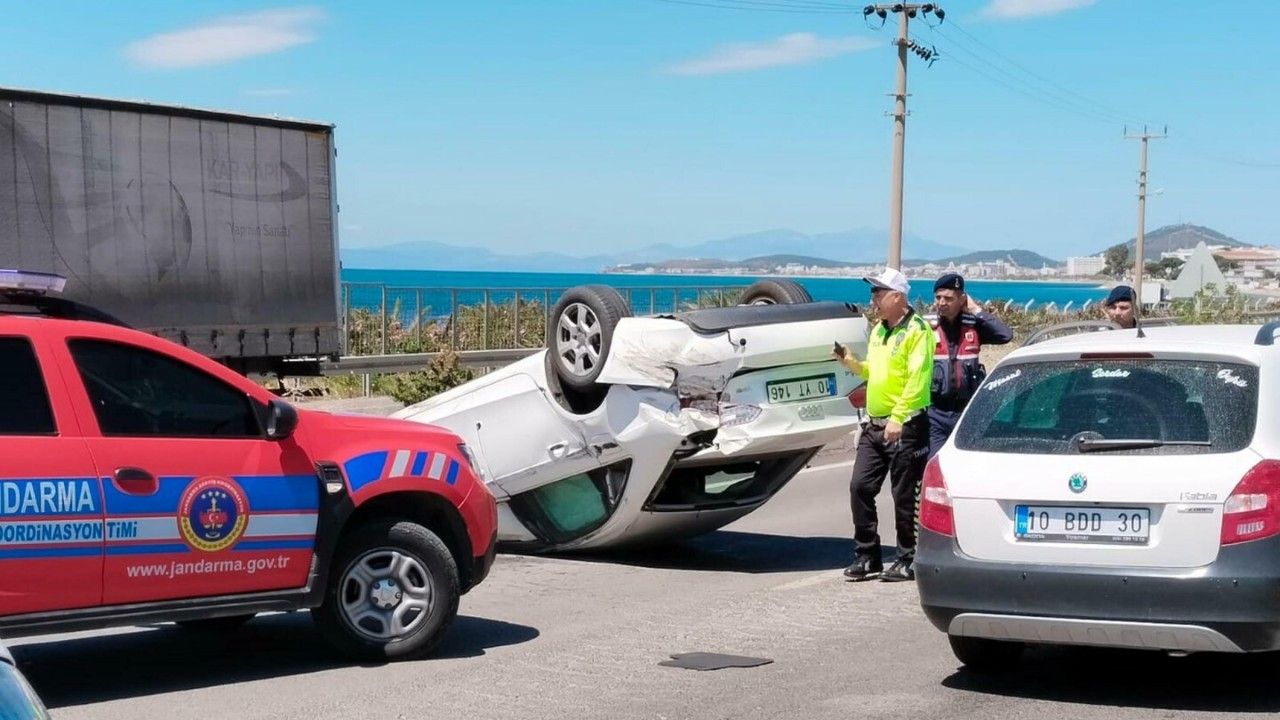 Kaza, Çanakkale ile İzmir'i birbirine bağlayan E-87 karayolunun Ayvalık'ın Küçükköy Mahallesi yakınlarında meydana geldi. İzmir istikametinden Çanakkale'ye seyir halinde olan H.M. (74) idaresindeki 34 ZG 805 plakalı otomobil ile önünde giden H.İ. (56) idaresindeki 26 BR 792 plakalı otomobilin arasına makas atarak girdiği öne sürülen H.K. (35) yönetimindeki 10 YT 146 plakalı otomobil, iki araca çarparak, takla attı. Kaza sırasında savrulan H.M. yönetimindeki otomobil, A.K. idaresindeki plakası öğrenilemeyen motosiklete çarptıktan sonra alev alıp yanmaya başladı.