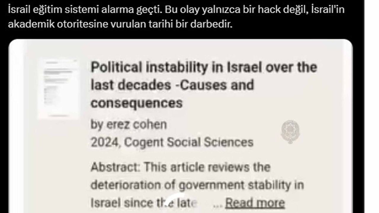 Aysu DURSUN/ANTALYA, (DHA)- İSRAİLLİ tarihçi Prof. Hanoch Penpazi'nin üniversite hesabı, Türk hacker grubu Ayyıldız Tim tarafından hacklendi. Saldırı sonrası profesörün paylaştığı tüm akademik içerikler değiştirildi.