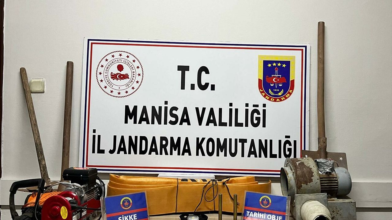 Manisa İl Jandarma Komutanlığı'na bağlı Salihli İlçe Jandarma Komutanlığı ekipleri, istihbarat çalışmasıyla Caferbey Mahallesi'nde oturan C.İ.'nin, evinin bahçesinde izinsiz tarihi eser kazısı yaptığı bilgisini aldı. İhbar üzerine Sart Karakol Komutanlığı, Jandarma suç Araştırma Timi (JASAT) ve Olay Yeri İnceleme Timi (OYİT) ekipleri ortak operasyon düzenledi. Yapılan baskında, evin bahçesinde define aramak amacıyla kazıldığı değerlendirilen 20 metrelik çukur bulundu. Bahçede yapılan aramalarda; 7 tarihi eser niteliğinde madeni para, 7 tarihi obje, 1 hilti, 1 havalandırma pompası, 1 seyyar vinç, 2 su bulma aparatı, 2 kazma ve 1 kafa lambası ele geçirildi. Gözaltına alınan C.İ. hakkında adli işlem başlatıldı. (DHA)