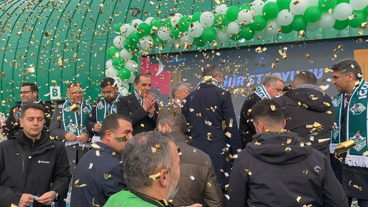 Edilen duanın ardından Iğdır Stadyumu'nun açılış kurdelesini kesen Bakan Bak, beraberindeki heyetle birlikte Alagöz Holding Iğdır FK'nın Manisa FK'yı konuk ettiği maçı tribünde takip etti.