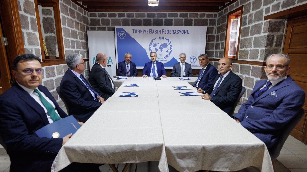 Dışişleri Bakanı Hakan Fidan, Türkiye Basın Federasyonu'nu ziyaret etti. Bakan Fidan, New York'ta gerçekleştirilecek Birleşmiş Milletler Genel Kurulu Yüksek Düzeyli Haftası'na ilişkin, "İlk günden itibaren çok yoğun bir şekilde çalışıyoruz. Biliyorsunuz her yıl Birleşmiş Milletler Genel Kurulu Yüksek Düzeyli Haftası eylül ayı içerisinde, genellikle eylül ayının sonuna doğru New York'ta, yani Birleşmiş Milletler'in ana karargahının olduğu yerde düzenlenir. Burada bütün devletler gelirler, Genel Kurul'da gündeme ilişkin beyanlarını verirler. İkili görüşme yaparlar. Çok yoğundur Birleşmiş Milletler Genel Kurulu Haftası. Bu sene Birleşmiş Milletler'de bazı ülkelerin öncülüğüyle, Türkiye'nin de desteğiyle Filistin konulu bir konferans yapılması kararlaştırıldı. Burada şu ana kadar Filistin'i devlet olarak tanımayan, başta Fransa olmak üzere Belçika gibi bazı batı ülkelerinin de Filistin'i devlet olarak tanıması konusunda adımlar atacakları beyan edildi" dedi.