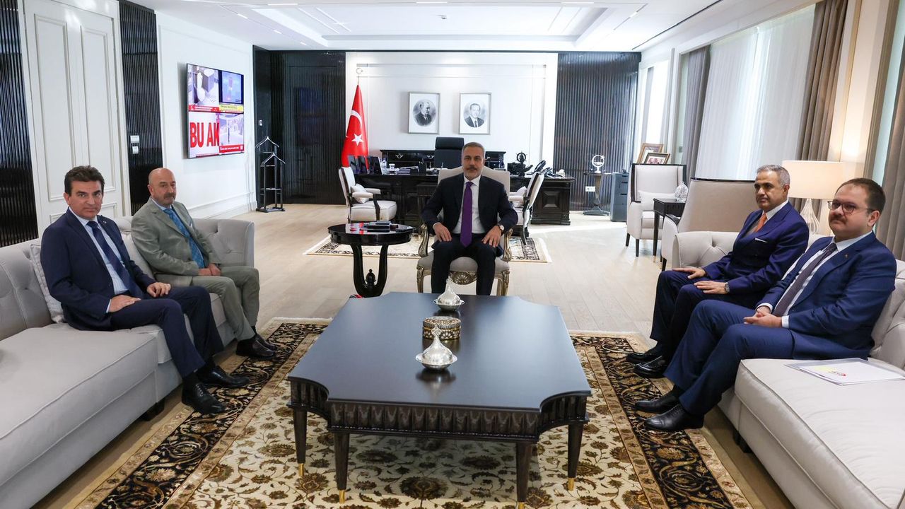 ANKARA, (DHA)- DIŞİŞLERİ Bakanı Hakan Fidan, Ordu Yardımlaşma Kurumu (OYAK) Yönetim Kurulu Başkanı Zekai Aksakallı ve Genel Müdür Murat Yalçıntaş'ı kabul etti.