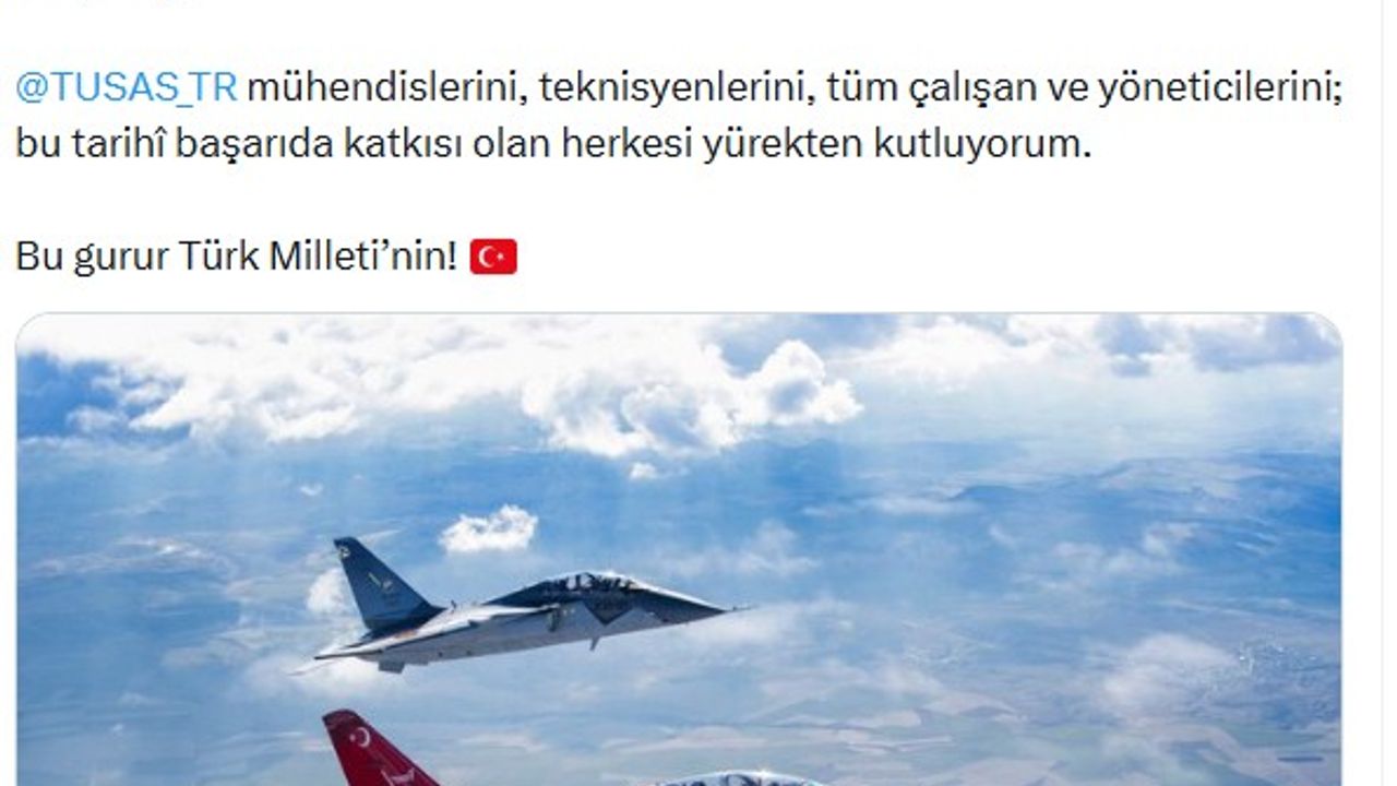 Bakan Kacır, sanal medya hesabından yaptığı paylaşımda, 'Milli jet uçağımız HÜRJET İspanya'ya ihraç ediliyor. Cumhurbaşkanımız Sayın Recep Tayyip Erdoğan'ın liderliğinde sürdürdüğümüz Millî Teknoloji Hamlesi ile Türk mühendisliğinin imzası gökyüzüne atılıyor. Türk Havacılık ve Uzay Sanayii (TUSAŞ) mühendislerini, teknisyenlerini, tüm çalışan ve yöneticilerini; bu tarihi başarıda katkısı olan herkesi yürekten kutluyorum. Bu gurur Türk milletinin' ifadelerine yer verdi. (DHA)