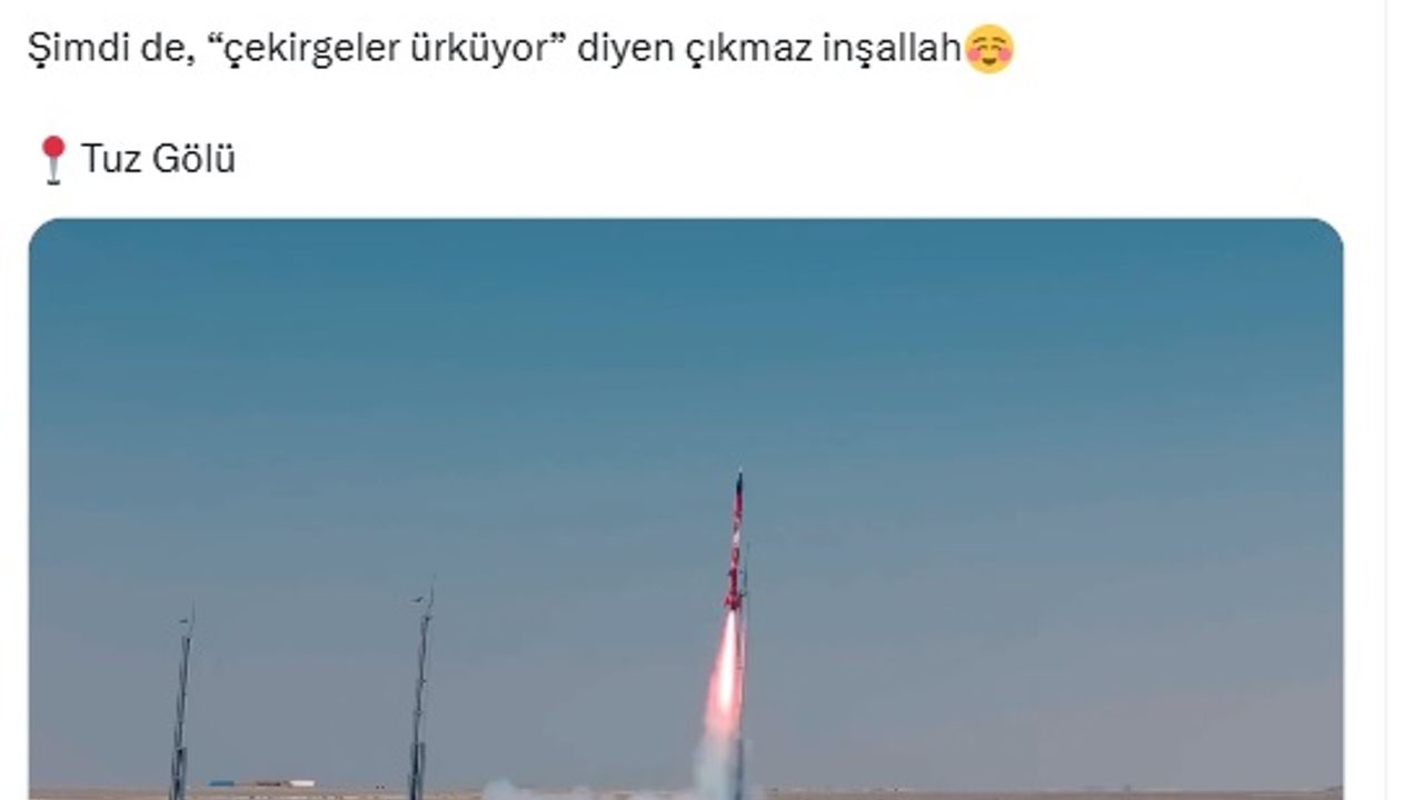 ANKARA, (DHA)- SANAYİ ve Teknoloji Bakanı Mehmet Fatih Kacır, Tuz Gölü’nde TEKNOFEST kapsamında düzenlenen roket yarışmasında roketlerin fırlatılma anlarını paylaşarak, "Şimdi de, ‘çekirgeler ürküyor’ diyen çıkmaz inşallah" dedi.