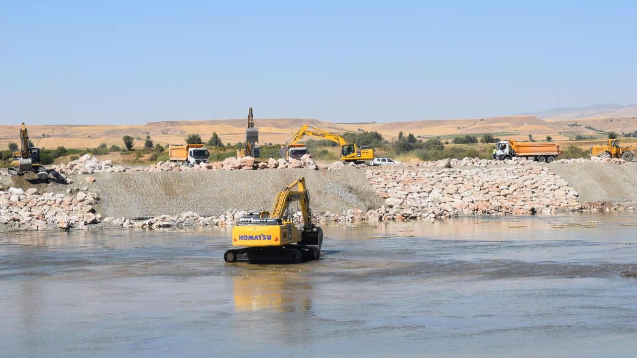 Bakan Şimşek, daha sonra beraberindekilerle birlikte Silvan kara yolundaki Batman Çayı Islahı 4’üncü kısım başlama törenine katıldı. (DHA)