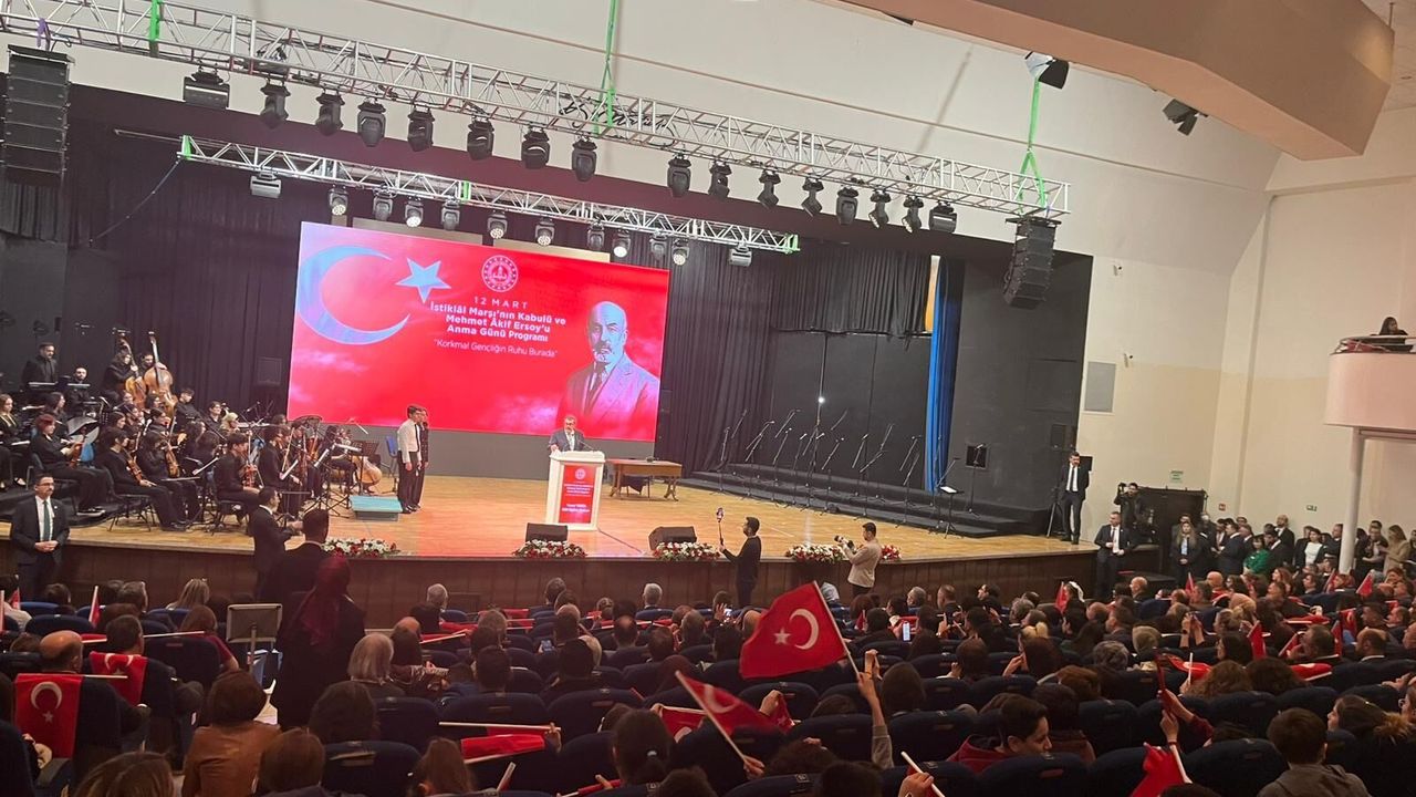 Bakan Tekin, Ankara'da 'Korkma! Gençliğin Ruhu Burada' temasıyla MEB Şura Salonu'nda düzenlenen 'İstiklal Marşı'nın Kabulü ve Mehmet Akif Ersoy'u Anma Programı'na katıldı. Burada konuşan Tekin, '12 Mart 1921, necip bir milletin kendi istikbali ve istiklali hakkında verdiği hükmün, tarihin sinesine nakşedildiği mümtaz bir dönemeçtir. O gün kabul edilen İstiklal Marşımız, ateş hattında kaleme alınmış bir şiir olarak doğmuş; kısa sürede bu tanımın çok ötesinde bir anlam kazanmıştır. Öyle ki İstiklal Marşı, milletimizin en zor şartlarda dahi varlığını hangi değerler üzerine kuracağını, kendini nasıl tanımladığını ve geleceğe hangi sarsılmaz inançla yürüyeceğini ortaya koyan güçlü bir karakter beyanıdır. Bu yönüyle kolektif hafızamızın, milletimizin iradesinin ve bağımsızlığımızın timsali olarak yaşamaya devam etmektedir. Milletler; tarihlerini yaşadıkları hadiselerle beraber, o kritik hadiselerin ortasında kendileri hakkında söyledikleri edebi metinlerle tarihe nakşederler. İstiklal Marşı işte böyle esaslı ve kurucu bir manzumedir. Umudun daraldığı, belirsizliğin kol gezdiği bir vasatta kaleme alınmış, istikamet gösteren bir metindir. Korkunun değil cesaretin, tavizin değil kararlılığın; teslimiyetin değil iradenin, tereddüdün değil imanın, yeisin değil umudun en gür sesidir. Bu yönüyle milletimizin karakterini, sarsılmaz iradesini, ahlaki derinliğini ve nihayetinde dünyaya sunduğu medeniyet iddiasını kayıt almıştır. Zaman değişir, şartlar değişir; fakat insanın temel sınavları değişmez. İstiklal Marşı'nın kalıcı bir tesire sahip oluşu, bu hakikatten beslenmesindendir' diye konuştu.