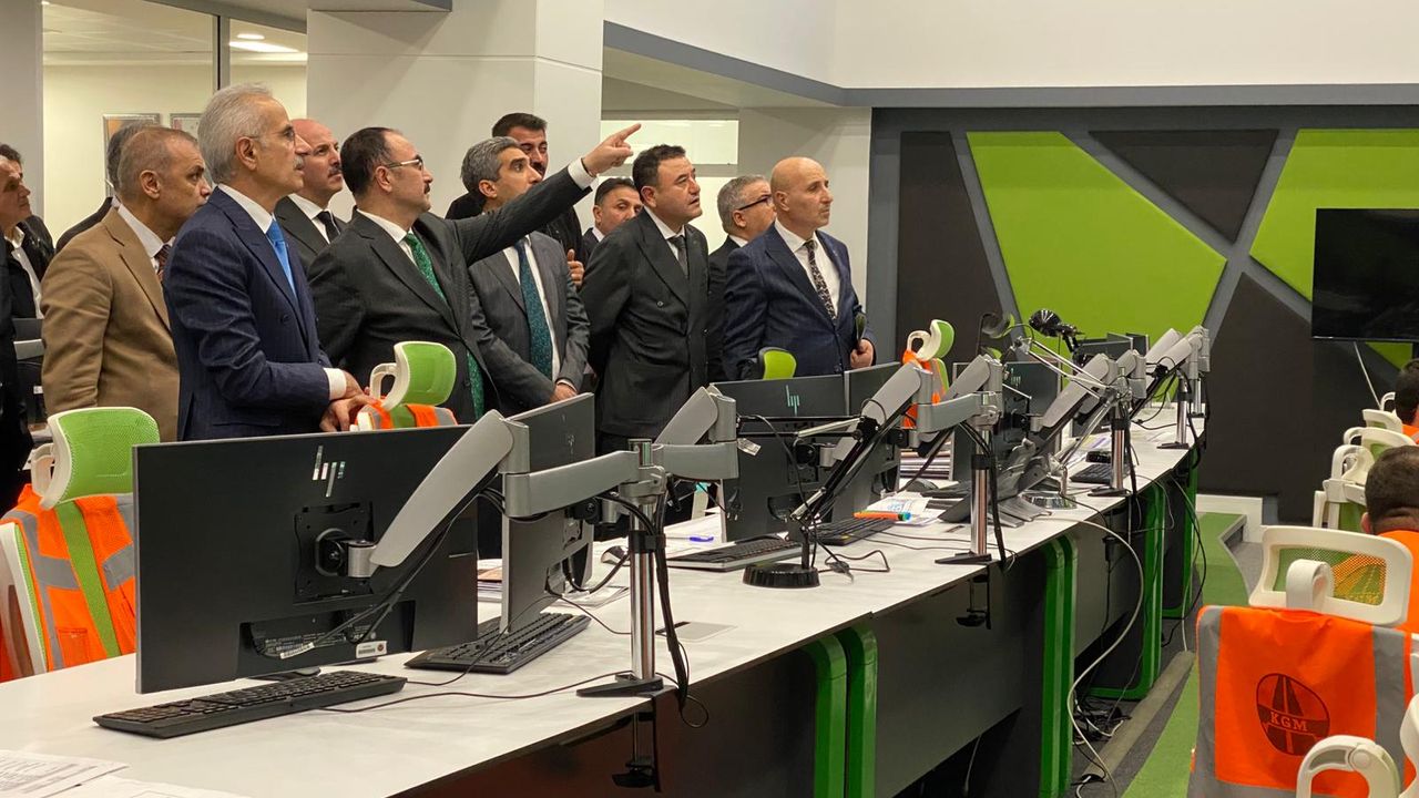 Bakan Uraloğlu, açıklamanın ardından, Akıllı Ulaşım Sistemleri Merkezi'nde bulunan ekranlardan kar araçlarındaki kameraları izleyerek, güzergahların son durumları hakkında bilgi aldı. (DHA)
