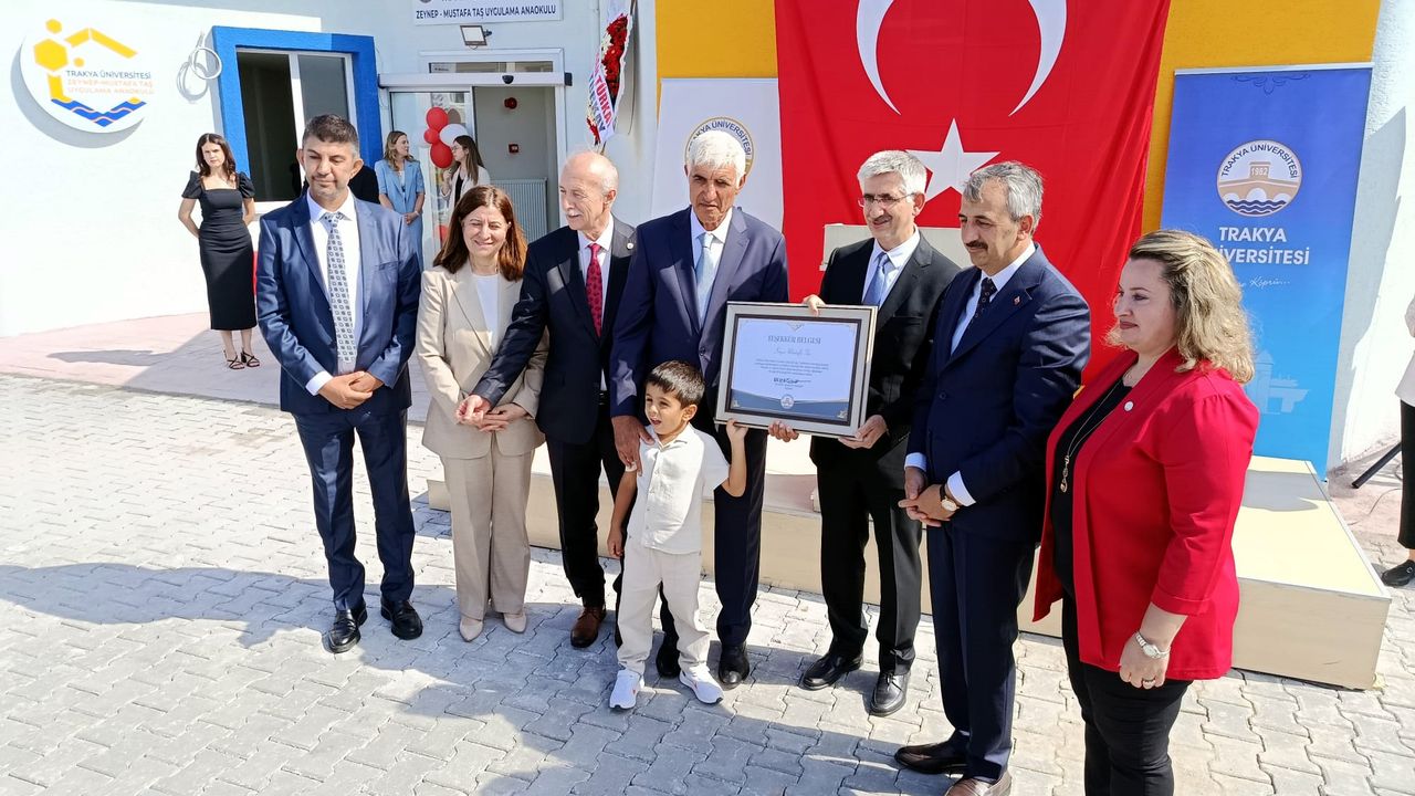 TÜ İsmail Hakkı Tonguç Yerleşkesi’ndeki Eğitim Fakültesi bünyesinde, hayırsever Zeynep ve Mustafa Taş tarafından uygulama anaokulu yapıldı. Üniversitedeki 16 akademisyenden oluşan danışma kuruluyla eğitim programı hazırlanan okulda; doğadan ilham alan petek mimarisi, her sınıfa açılan özel bahçeleri, STEAM laboratuvarı, müzik ve sanat atölyeleri, koza odası (duyu ve sakinleşme alanı) ile çocukların çok yönlü gelişimine katkı sunulması hedeflendi. Yaklaşık 2 ay gibi sürede tamamlanan anaokulunun açılışı Milli Eğitim Bakan Yardımcısı Nazif Yılmaz’ın da katılımıyla gerçekleştirildi. Açılışla Yılmaz’ın yanı sıra Edirne Valisi Yunus Sezer, AK Parti Edirne Milletvekili Fatma Aksal, TÜ Rektörü Prof. Dr. Mustafa Hatipler, hayırsever Zeynep ve Mustafa Taş ile akademisyenler katıldı.