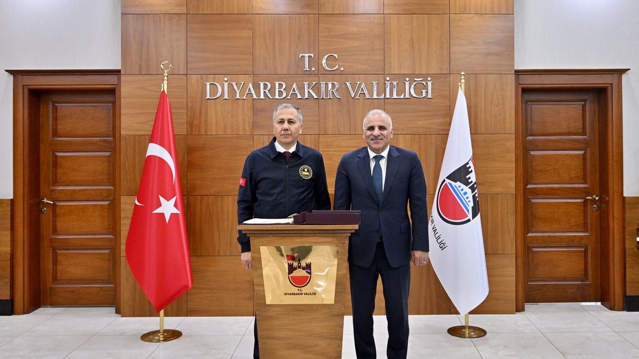 İçişleri Bakanı Ali Yerlikaya, Diyarbakır Valiliği'ni ziyaret ederek Valilik Şeref Defteri’ni imzaladı, kentte yürütülen çalışmalara ilişkin Vali Murat Zorluoğlu’dan bilgi aldı. Bakan Yerlikaya'ya AK Parti Diyarbakır milletvekilleri Mehmet Galip Ensarioğlu, Mehmet Sait Yaz ve Suna Kepolu Ataman ile AK Parti İl Başkanı Ömer İler ve MHP İl Başkanı Miktat Arslan eşlik etti.