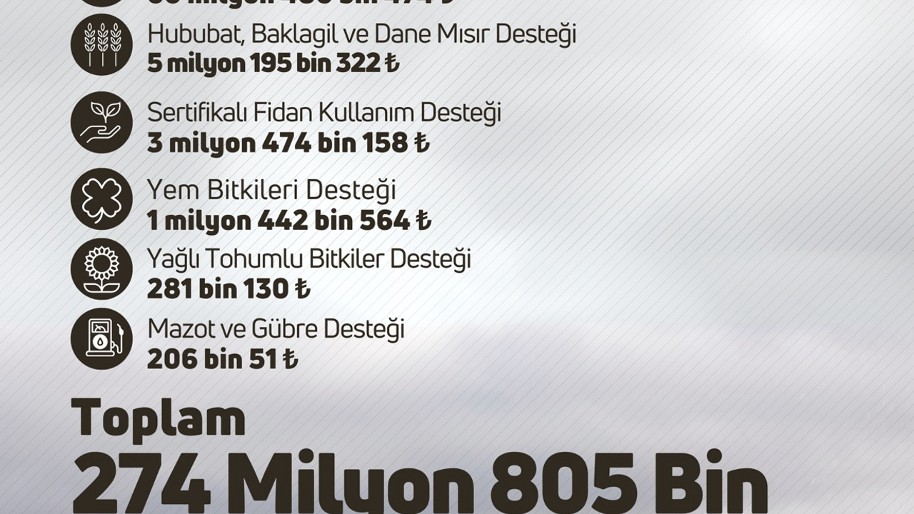 ANKARA, (DHA)- TARIM ve Orman Bakanı İbrahim Yumaklı, “274 milyon 805 bin TL tarımsal destek ödemesini bugün çiftçilerimizin hesaplarına aktarıyoruz” dedi.