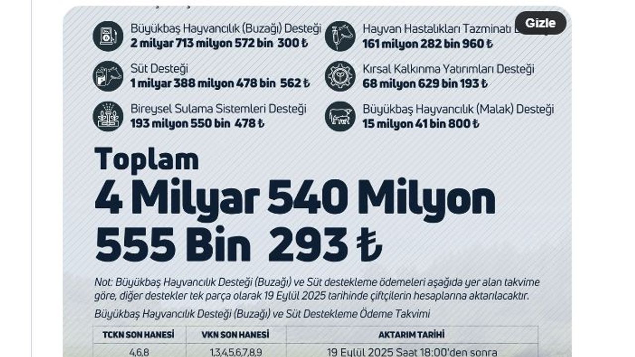 ANKARA, (DHA)- TARIM ve Orman Bakanı İbrahim Yumaklı, 4 milyar 540 milyon TL tarımsal destek ödemesinin bugün itibarıyla çiftçilerin hesaplarına aktarıldığını açıkladı.
