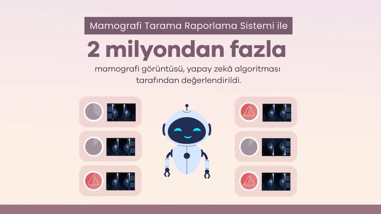 Bakanlıktan yapılan açıklamaya göre; meme kanseriyle mücadelede 'Mamografi Tarama Raporlama Sistemi' hayata geçirildi. 2024 yılından bu yana 2 milyondan fazla tarama sonucu yapay zeka desteğiyle incelendi. Bu sayede meme kanserinin erken teşhisinde yeni bir dönem başlatılırken tedavide de başarılı sonuçlar elde edildi. 40-69 yaş aralığındaki kadın vatandaşlara yönelik yürütülen tarama programı kapsamında; KETEM (Kanser Erken Teşhis, Tarama ve Eğitim Merkezi) ve Sağlıklı Hayat Merkezleri'nde çekilen tüm görüntüler yüzde 100 dijital ve merkezi bir sistemde toplandı. Sistemin kalbinde yer alan yapay zeka algoritmaları, şüpheli bulguları en az sapma payıyla tespit ederek radyologlar için kritik bir 'karar destek mekanizması' oluşturdu.