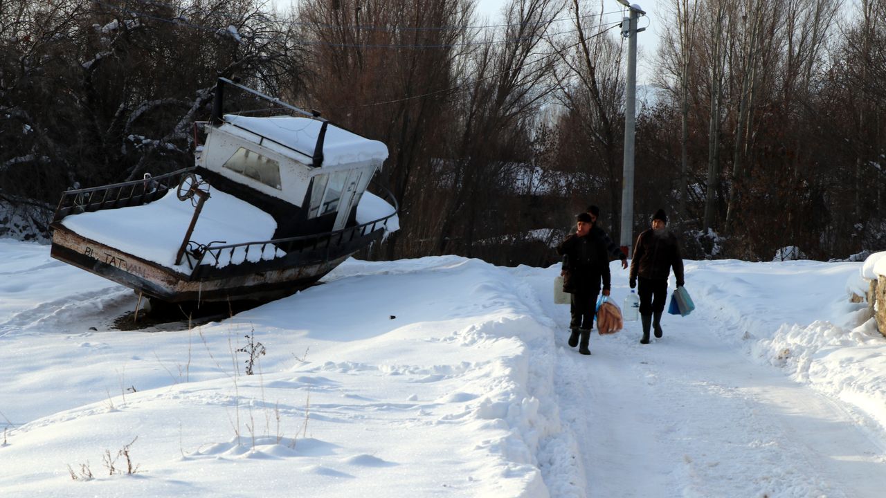 Kentte geçen hafta etkili olan kar yağışı, yerini sert soğuklara bıraktı. Soğuk havanın etkisiyle Van Gölü'nün sığ kıyı kesimleri ile dere ve akarsular donarken, göl yüzeyinde oluşan buz tabakası balıkçıların işini zorlaştırdı. Gevaş ilçesi Dereağzı Mahallesi'nde hava sıcaklığı geceleri eksi 20 derecelere kadar düşerken, balıkçılar teknelerinin altındaki buz tabakasını demir çubuklarla kırarak göle açılmak zorunda kalıyor. Balıkçılar, buz tabakalarını kırdıktan sonra tekneleriyle Van Gölü'nde balık avına çıkıyor.