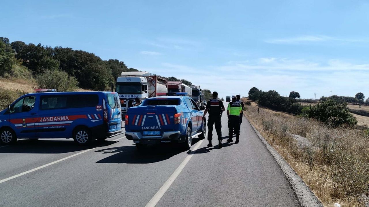 Patlama riskine karşı bölgedekiler kaza yerinden uzaklaştırılırken, Balıkesir- Savaştepe karayolu tedbir amacıyla trafiğe kapatıldı. Bölgede ekiplerin çalışması sürüyor. (DHA)