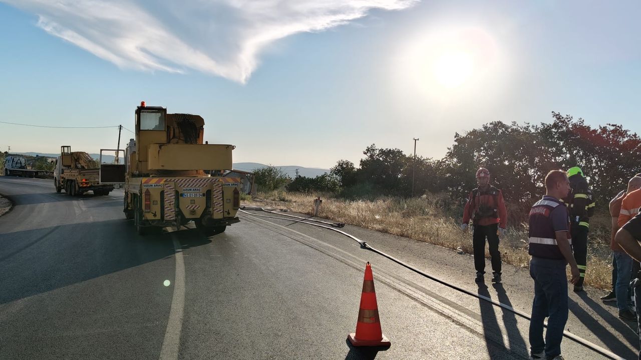 Balıkesir'in Savaştepe ilçesinde amonyum nitrat yüklü tankerin devrilmesi sonucu saat 15.00’te ulaşıma kapatılan 10/51 İl yolu olarak geçen Balıkesir Savaştepe karayolu, tankerin yoğun güvenlik önlemleri alınarak 6 saat sonra kaldırılmasının ardından açıldı. (DHA)