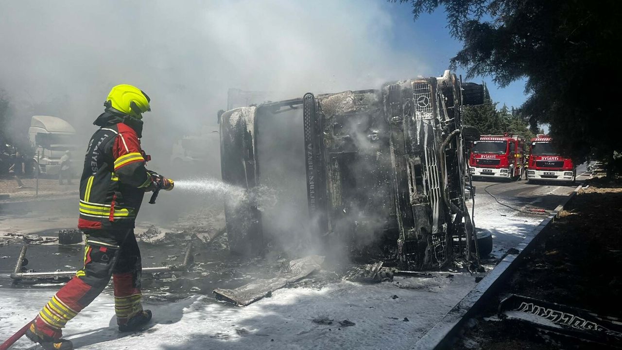 Kaza, saat 13.00 sıralarında Balıkesir çevreyolunun İzmir istikametinde meydana geldi. C.S. yönetimindeki 16 AAB 185 plakalı kağıt havlu ve su yüklü TIR, şoförünün direksiyon kontrolünü yitirmesi sonucu devrilip, alev aldı. Dorsedeki kağıt havlu ve sular çevreye saçıldı. Alevler yol kenarındaki otlara da sıçradı. İhbar üzerine bölgeye polis, sağlık ve itfaiye ekipleri sevk edildi. Yaralanan C.S., çevredekilerin yardımıyla TIR'dan çıkarıldı. C.S., ihbarla gelen sağlık ekiplerinin ilk müdahalesinin ardından hastaneye kaldırıldı. Balıkesir Büyükşehir Belediyesi İtfaiye ekipleri, yaklaşık 1 saatlik çalışmayla yangını kontrol altına aldı.