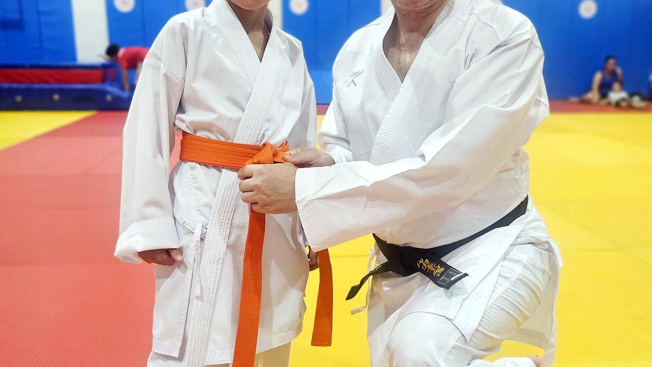 Cavit AKGÜN / MUĞLA, (DHA)- MUĞLA Cumhuriyet Başsavcısı Oğuzhan Dönmez, 30 yıl önce başladığı karate yolculuğunda siyah kuşak diploması sahibi oldu. 1990'lı yıllarda karate yapan ve spora uzun yıllar ara veren Başsavcı Oğuzhan Dönmez, 2025 yılında oğlu Bilgehan ile yeniden Tatami’ye dönerek siyah kuşak ünvanını elde etti. 1991-1995 yılları arasında aktif olarak karate yapan Dönmez, üniversite döneminde spora ara verdi. 2025 yılında oğlu Bilgehan ile birlikte yeniden antrenmanlara başlayan Dönmez, yoğun çalışmalarının ardından siyah kuşak diplomasını almaya hak kazandı. Başsavcı Dönmez'e siyah kuşak diplomasını Karate Milli Takım Antrenörü Kadir Yılmaz verdi.