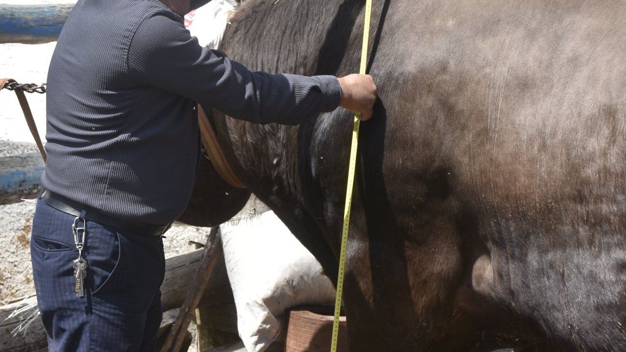 Kurban Bayramı telaşının başladığını söyleyen Mehmet Kars, 'Bayram yaklaşıyor, şu anda ahırımızda en normal hayvanımız bu. Biz bunu kuru yemle besliyoruz. Kendi ürettiğimiz yemlerle besliyoruz. Ağırlığı 1 ton 180 kilogram. Müşterilerimizin de gözdesi haline geldi. Görenler hayran kalıyor. Şu an bu tosunumuza 435 bin TL istiyoruz' dedi. Hayvanların iriliği konusunda küçükken sütle beslenmesinin önemli olduğunu belirten Kars, 'Bu hayvanları buzağı iken emzirmek çok önemli. Ben uygun yaşına gelene kadar buzağıyı emziririm' diye konuştu.