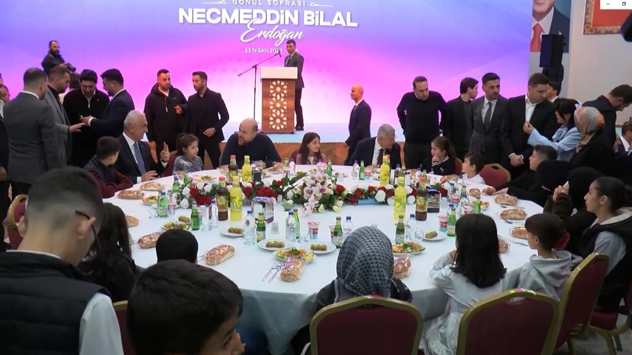 Erdoğan, Muş Öğretmenevinde partililerle, sivil toplum kuruluşu temsilcileri, vatandaş ve çocuklarla yemekte bir araya geldi. Burada konuşan Erdoğan, 'Bugün gündemimiz çocuklar. Çocuklarımızın güvenli, emniyetli bir şekilde okullarına devam edebilmeleri gündemde. Fiziki emniyetin ötesinde çocuklarımızın ekran bağımlılığıyla mücadelede oradan nasıl korunacağı, sosyal medya ve türevleri üzerinden çocuklarımızı esir almaya çalışan kötü etkenlerden nasıl korunacakları, şu anda gündemimizde bunlar var. 23 Nisan'da bunların daha çok konuşulması lazım. Meclisimizde sosyal medyanın tuzaklarından çocuklarımızı korumaya yönelik bir düzenleme geçirildi. Bunu duymak çok sevindirici. Ancak bunun yaygınlaştırılması ve uygulanması lazım. Çünkü siz ne kadar tedbir alırsanız bu işleri yapanlar da kendi tedbirlerini alıyor. Siz ne kadar delikleri kapatırsanız başkaları başka yerlerden delikler açıp başka yollar bulmaya çalışıyor' diye konuştu.