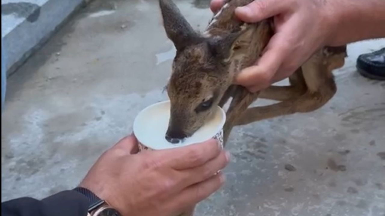 Tezcan SOLMAZ/ DÜZCE, (DHA)- DÜZCE’nin Kaynaşlı ilçesinde yuvasını kaybettiği tahmin edilen ve yürümekte zorlanan yavru karaca, İlçe Emniyet Müdürlüğü binasının bahçesine girdi. Polisler yavru karacayı sütle besleyerek, Milli Parklar Şube Müdürlüğü ekiplerine teslim etti.