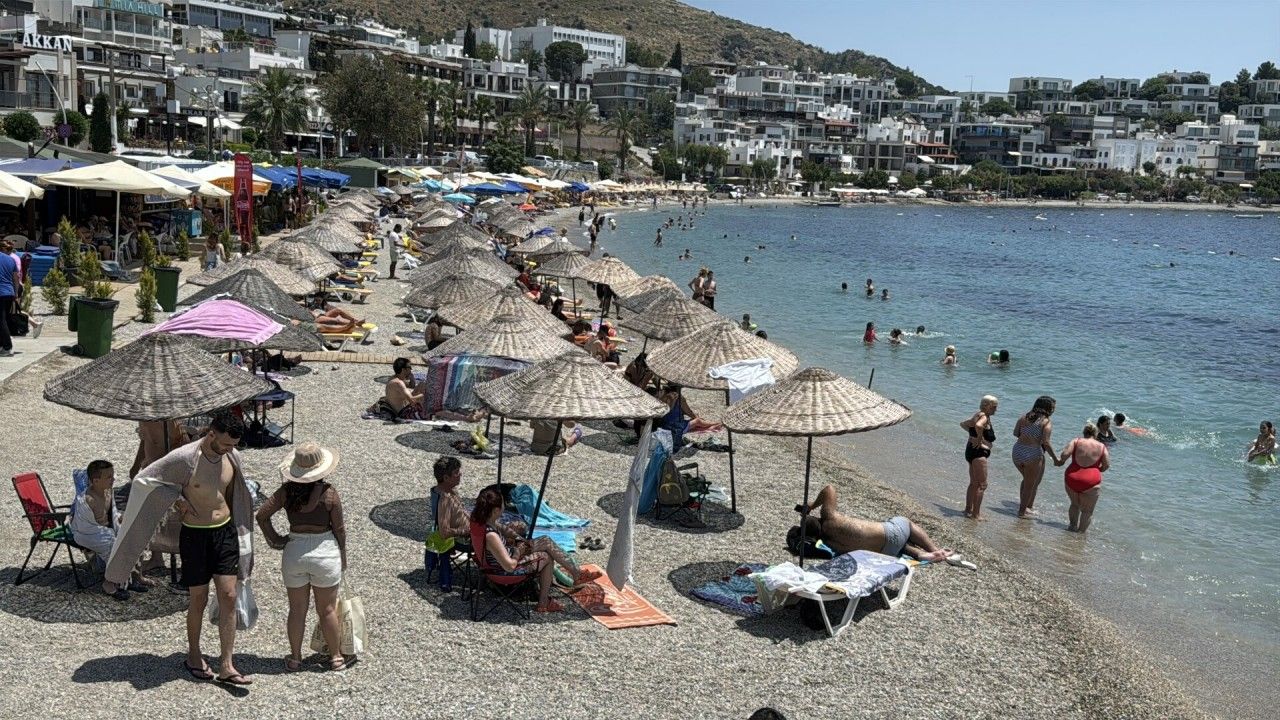 Bodrum'da hava sıcaklığı 33 derecelerde seyrederken, deniz suyu sıcaklığı 22 dereceleri gördü. Yerli ve yabancı turistler denize girerek serinlerken; bazıları kumsalda güneşlenmeyi tercih etti. Özel plaj işletmelerinde ise tatilciler, müzik ve yapılan etkinliklerle eğlendi. Öte yandan Gümbet, Bitez ve Ortakent'te de sahiller doldu. (DHA)